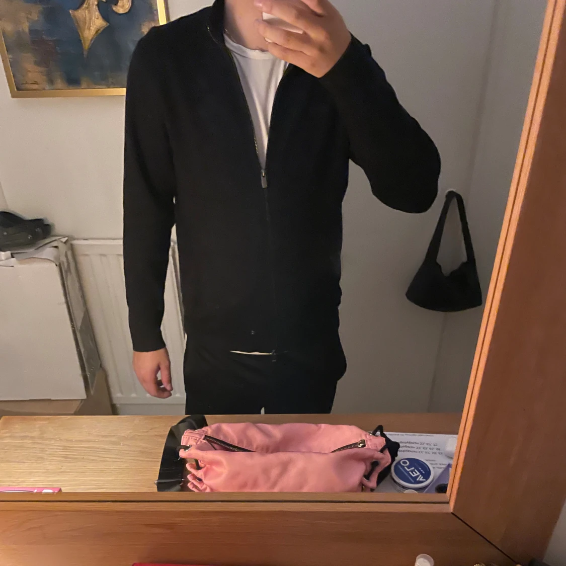 Svart cardigan tröja från massimo dutti med stilren design och hel dragkedja framtill. Jackan har lång ärm och en rak passform som sitter snyggt på kroppen. Perfekt för dig som gillar minimalistisk stil och vill ha något enkelt att slänga på sig. Materialet känns mjukt och bekvämt.