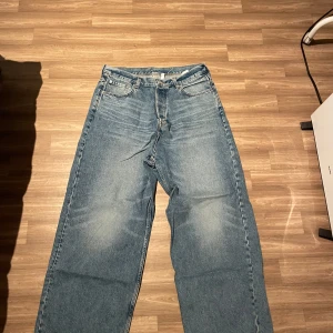 Säljer ett par snygga blå jeans från Astro. De har en loose passform och är tillverkade i klassiskt jeansmaterial. Perfekta för en avslappnad stil. Astro loose model. Storlek W34 L32
