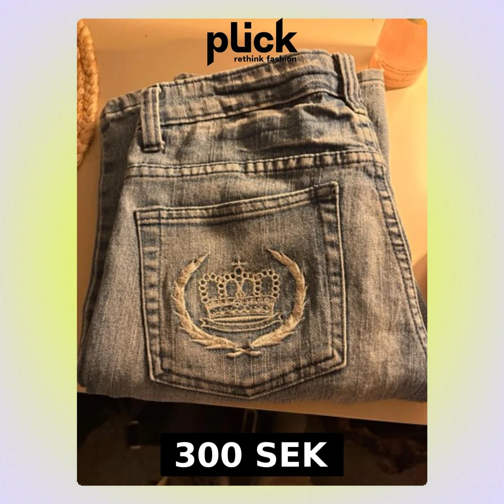 Snygga ljusblå jeans med raka ben och broderad krona på bakfickorna. Jeansen har klassisk femficksdesign och är tillverkade i mjukt denimtyg. Perfekta för dig som vill sticka ut med coola detaljer.