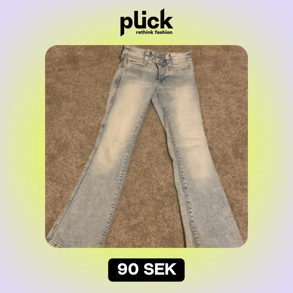 Ljusblå bootcut jeans - Säljer ett par ljusblå lågmidjade  bootcut jeans i bra  skick. Stolek 164 men passar på mih som brukar vanligt vis ha stolek 34/36