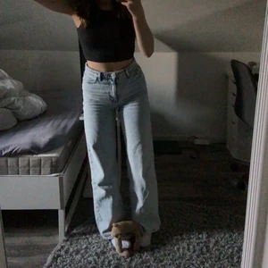 Säljer mina vida jeans från monki nu. Färgen framgår inte riktigt super bra på bilderna, men färgen är en riktigt ljus blå men lite toner av grå typ. Köparen står för frakten. Mycket bra skick.