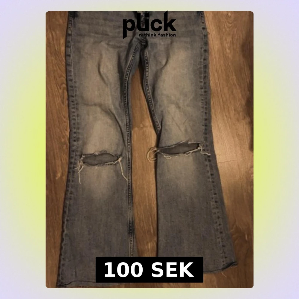 Blå bootcut jeans med slitna knän