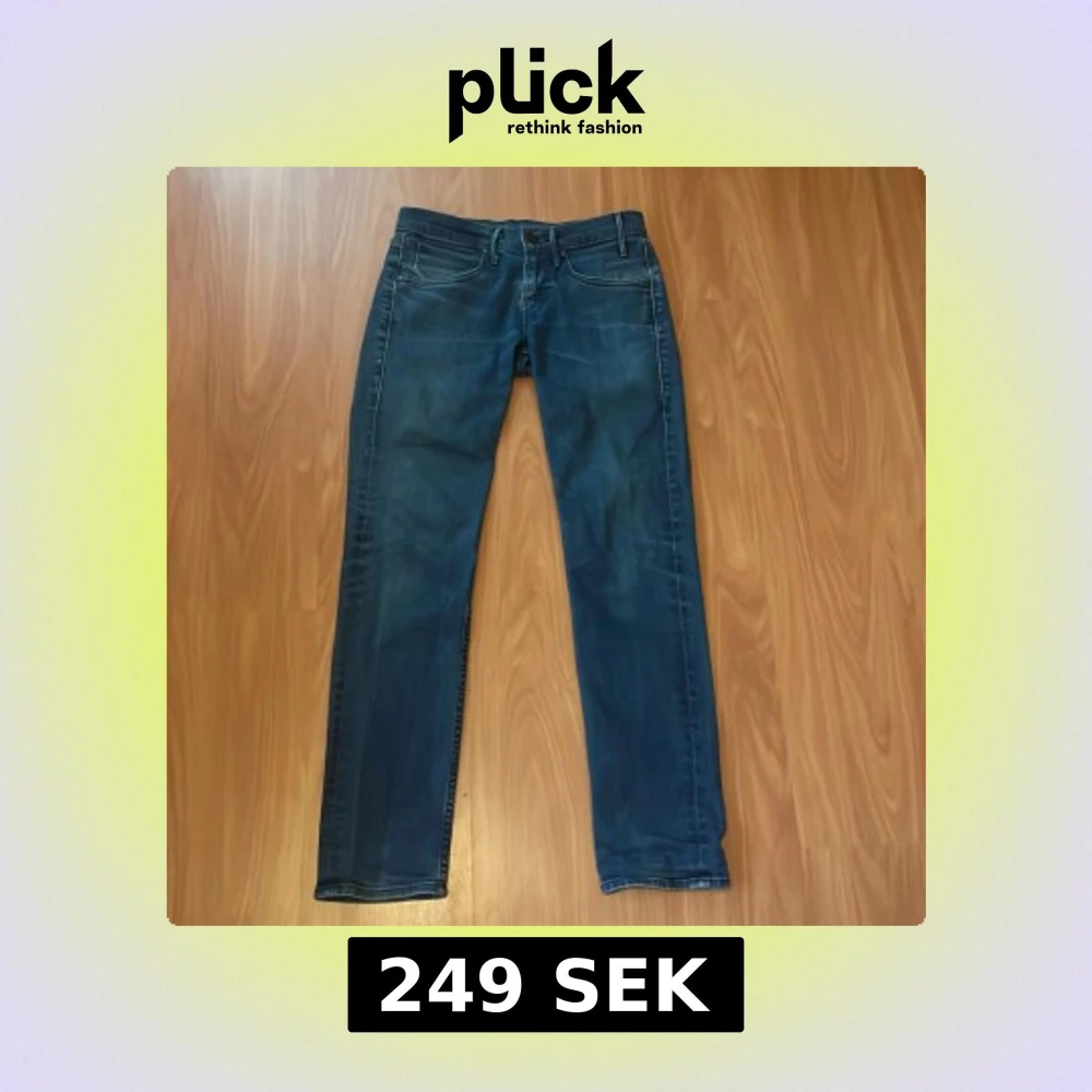 Levi's 511 blå jeans straight fit - Säljer ett par klassiska Levi's 511 jeans i blå denim. De har en straight fit med normal passform och snyggt slitna detaljer. Jeansen har fem fickor, bälteshällor och Levi's ikoniska läderpatch bak. Perfekta för dig som gillar en tidlös look.