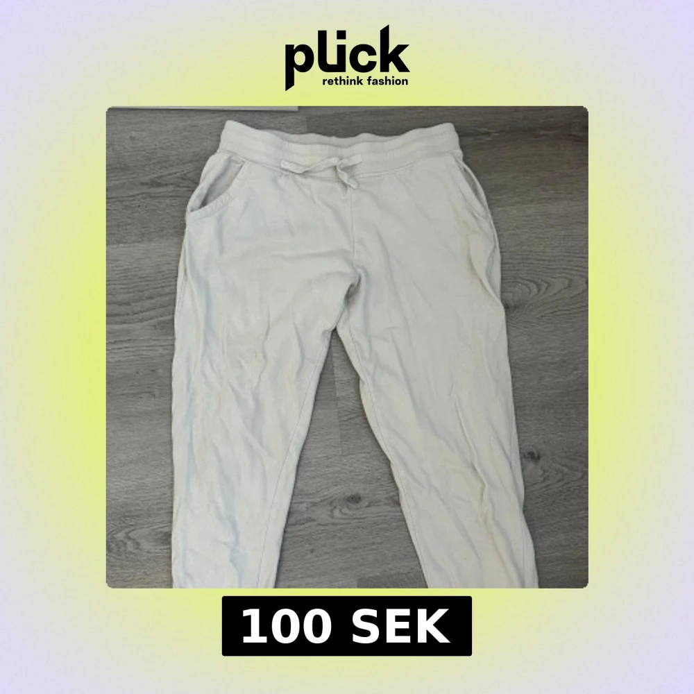 Vita mjukisbyxor med snörning - Säljer ett par vita mjukisbyxor med dragsko i midjan och raka ben. Byxorna har en avslappnad passform och är tillverkade i mjukt bomullsmaterial. Perfekta för chill dagar eller när du vill vara extra bekväm. Säljer matchande hoodie till!! Knappt använda