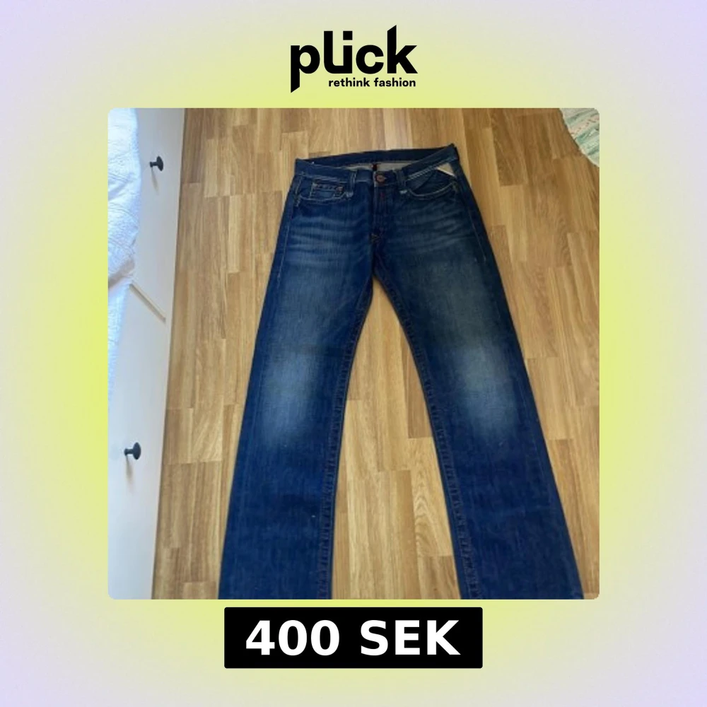 Snygga blåa jeans från Replay | skick:10/10, aldrig används innan | köpte för 800 på rea | säljer eftersom de var för stora när jag köpte dem | storlek: W30/L32 | pris kan förhandlas | skriv om du undrar något eller om du vill ha fler bilder | passar till varje outfit |