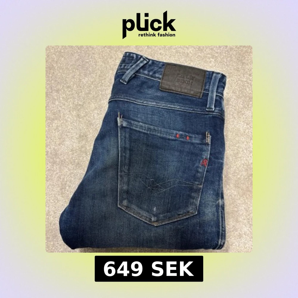 Snygga mörkblå jeans från Replay med en klassisk femficksdesign och lätt slitna detaljer. Riktigt bra skick, använda max 3 gånger