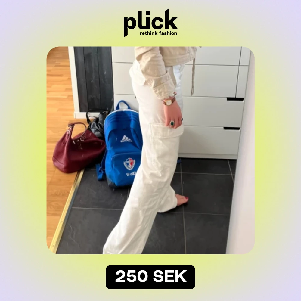 Vita cargo jeans zara  - Säljer mina populära vita cargo jeans från Zara i storleken 32. Säljer de pga att de är lite stora på mig som ni ser på bilden. Passar även någon med S. Bra i längden (jag är 158cm) och är i nyskick! High rise