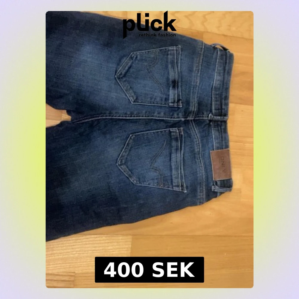 Säljer ett par mörkblå bootcut jeans från Only med klassiska bakfickor och snygg wash. Jeansen har en lätt utsvängd passform nedtill och är gjorda i mjukt denimtyg. XS, längd 30