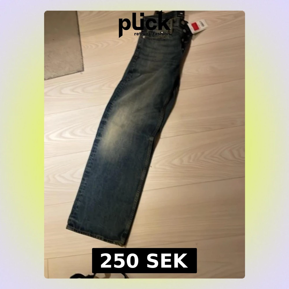 Säljer ett par blå jeans med rak passform och snygg vintage tvätt. Jeansen har klassiska fem fickor, normal midja och slitna detaljer framtill för en avslappnad look. Perfekta för dig som gillar en tidlös och trendig stil.