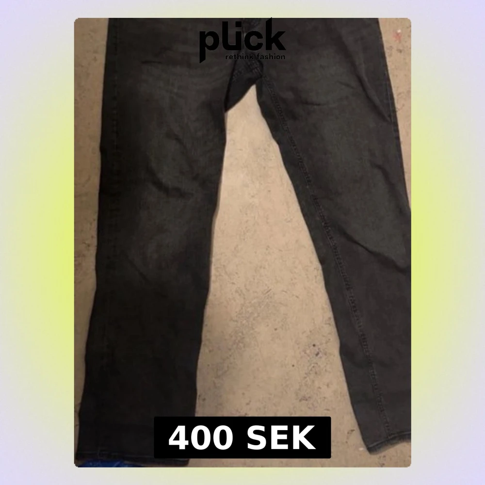 Säljer ett par svarta jeans med rak passform och klassisk femficksdesign. Jeansen har diskreta sömmar och är tillverkade i ett mjukt denimtyg som ger en avslappnad look. Perfekta till sneakers eller boots.