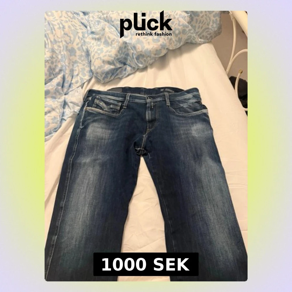 Säljer ett par klassiska blå jeans från Anbass i herrmodell. Jeansen har en snygg tvätt med slitningar och fem fickor. Passformen är rak och materialet är mjukt denim som ger en bekväm känsla. Perfekta till vardagslooken!