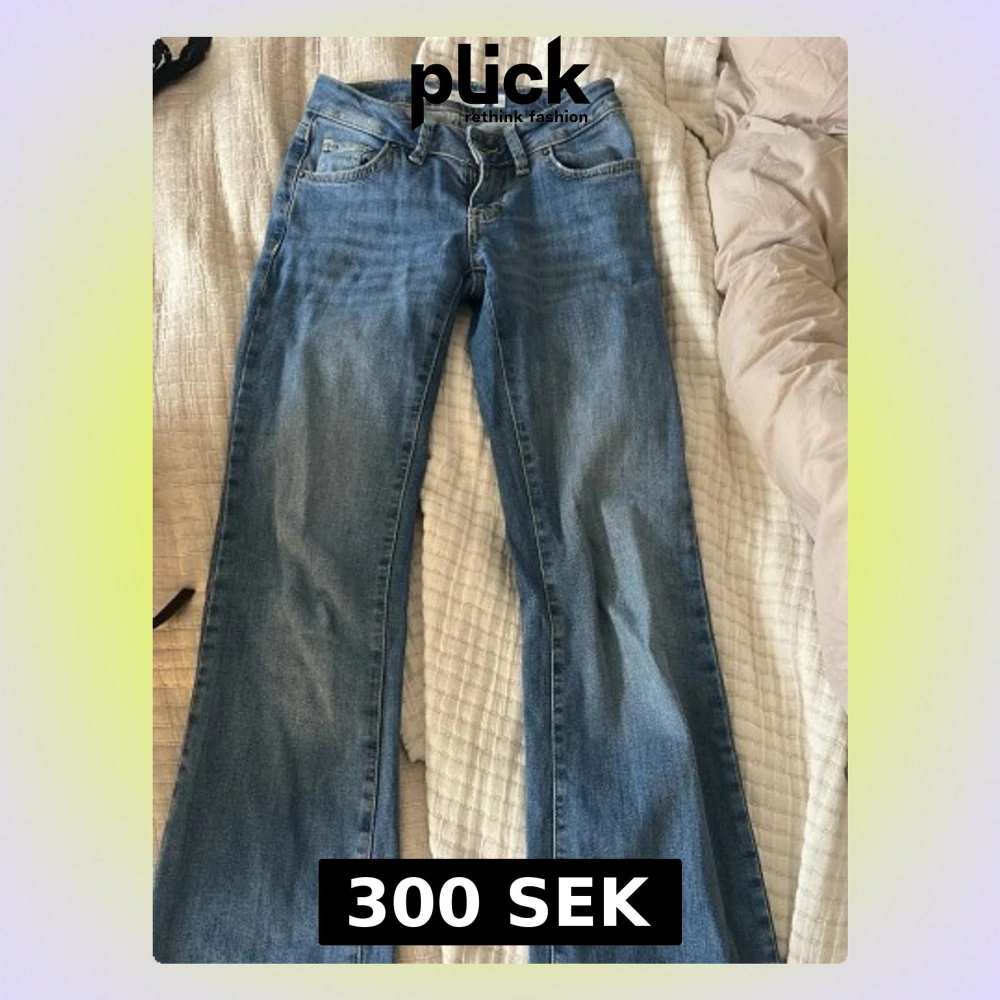 Säljer ett par klassiska blå bootcut jeans från Lee. Jeansen har fem fickor, normal midja och är tillverkade i mjuk denim med lätt slitningar framtill. Perfekta för dig som gillar en avslappnad men ändå snygg look. Lowwaist