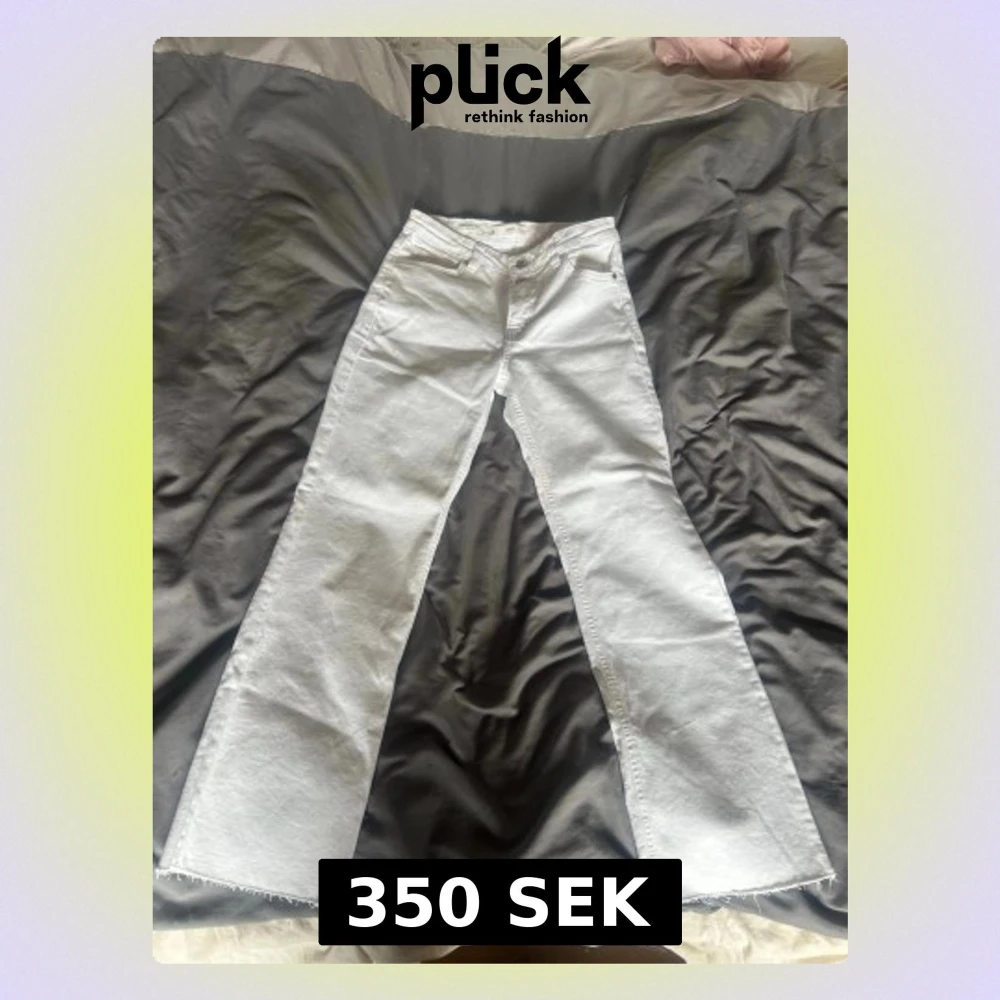 Säljer ett par vita bootcut jeans från MNG, modell Sienna. Jeansen har råa kanter nertill och klassisk femficksdesign. Tillverkade i ett kraftigare denimtyg som ger en snygg siluett. Perfekta för dig som vill ha ett par trendiga och stilrena jeans.