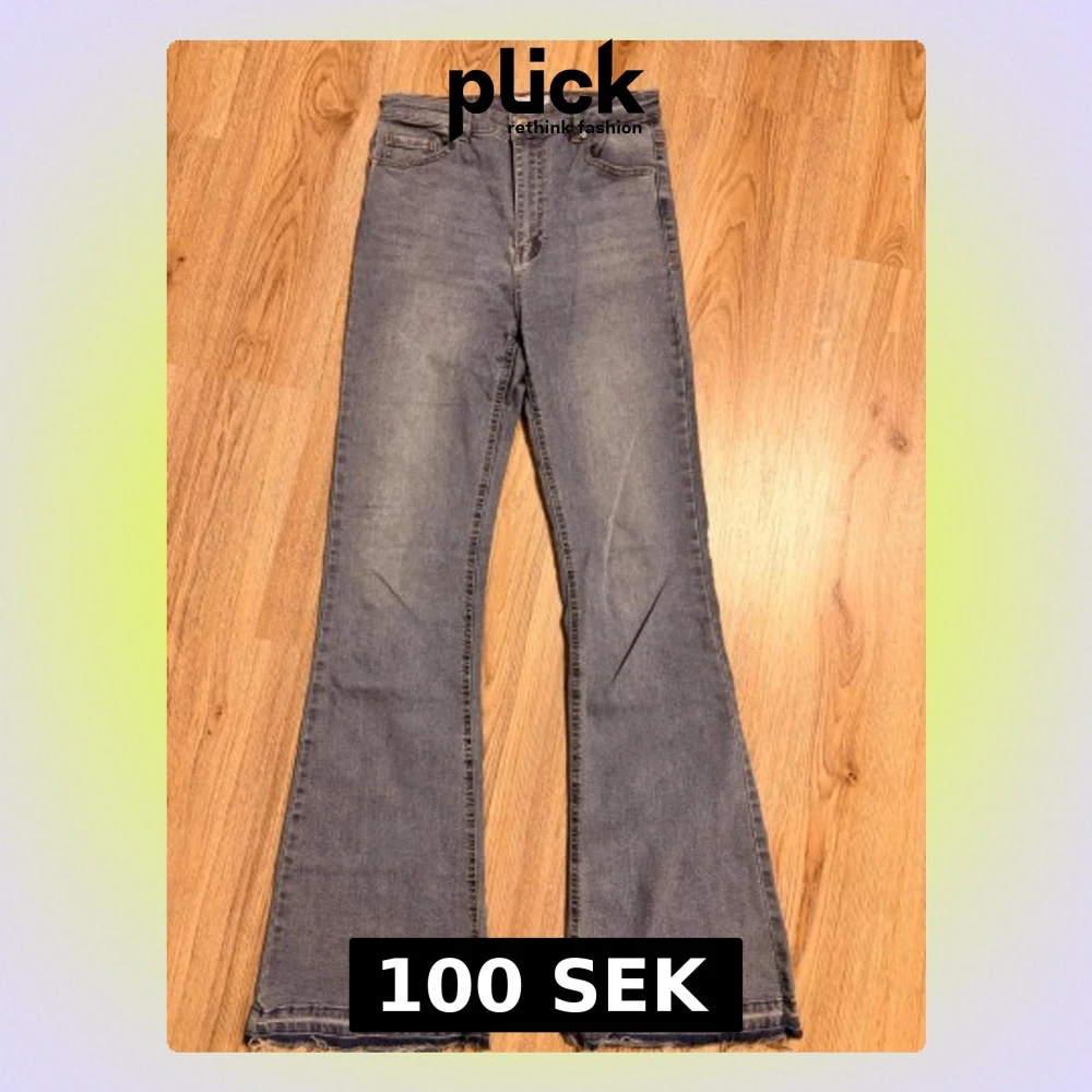 Snygga blå jeans med utsvängda ben och råa kanter nertill. Klassisk femficksmodell med hög midja och dragkedja. Perfekta för dig som gillar en retroinspirerad look och vill sticka ut lite extra.