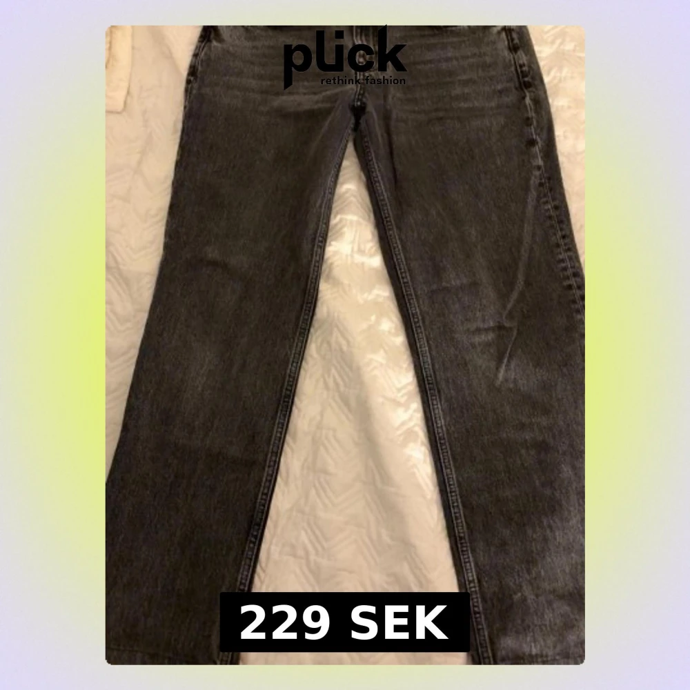 Säljer ett par svarta jeans med rak passform och klassisk femficksdesign. Jeansen har en snygg tvättad look som ger en vintage vibe och är tillverkade i kraftigt denimtyg. Perfekta för dig som gillar en avslappnad men stilren stil. Mina favorit byxor tyvärr blivit för små:(