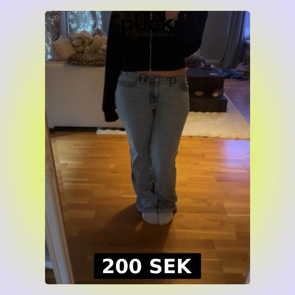 Säljer ett par ljusblå jeans från gina. De är low waisted, bootcut. Passar M/L