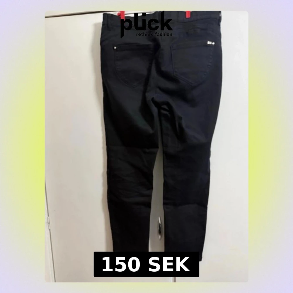 Säljer ett par svarta jeans med rak passform och hög midja. Klassisk femficksmodell med bälteshällor och knappgylf. Jeansen har en stilren look och passar perfekt till en trendig vardagsoutfit.