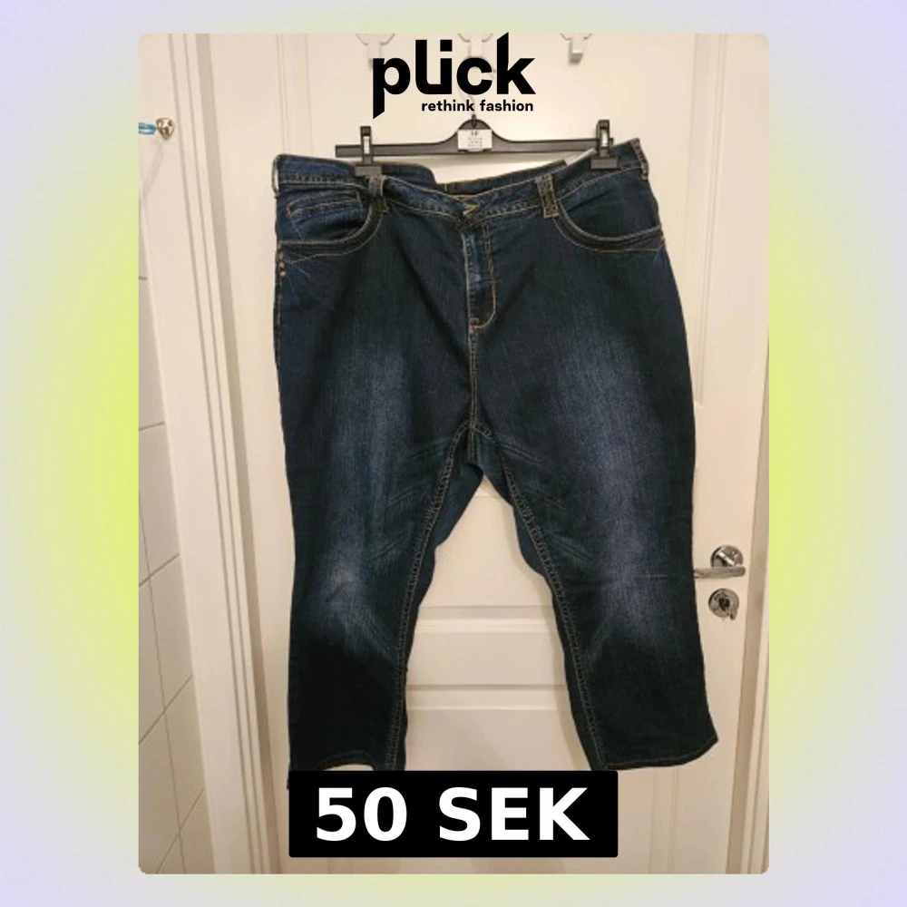 1 par snygga raka jeans från Zizzi som är kortade med en innerbenslängd på 63 cm. Storlek 52