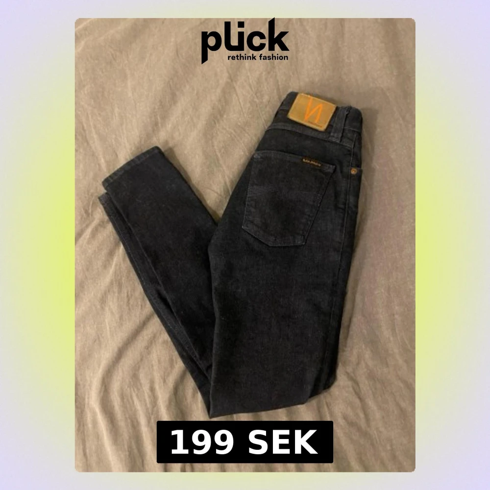 Säljer ett par mörkblåa jeans från Nudie Jeans med klassisk femficksmodell och raka ben. Jeansen har en snygg mörk tvätt, kontrastsömmar och Nudie-logga på bakfickan. Tillverkade i kraftig denim, perfekta för en clean och stilren look. Storlek: W26 L30. Seriösa bud kan godkännas.