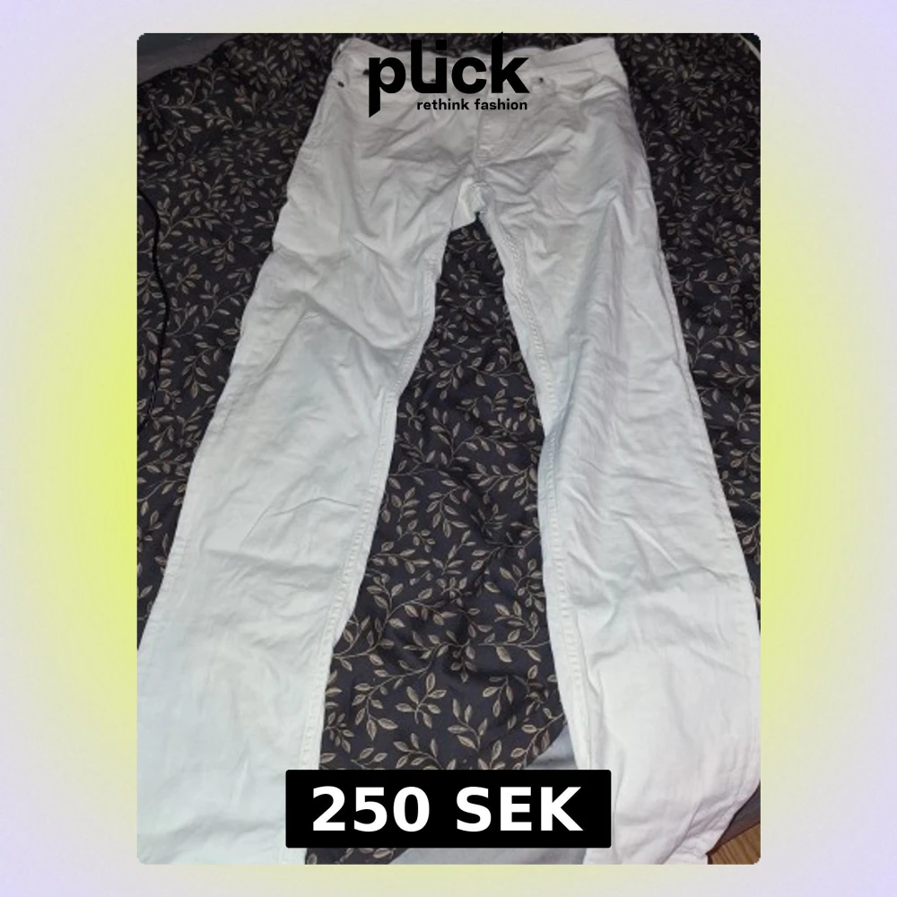 Säljer ett par vita slim fit jeans från Calvin Klein med stretch. Klassisk femficksmodell och snygga silverdetaljer vid knappar och nitar. Perfekta för dig som vill ha en clean och stilren look. Passar dig som är ungefär 180 cm lång.