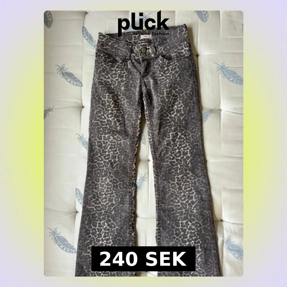 Lågmidjade leopard jeans från Nelly💞🫰🏻 Storlek 32, inte använda så många gånger pga för långa, men dem har gått sönder lite längst ner vid benet, se på bild, men det syns/märks inte när man har dem på🫰🏻💞