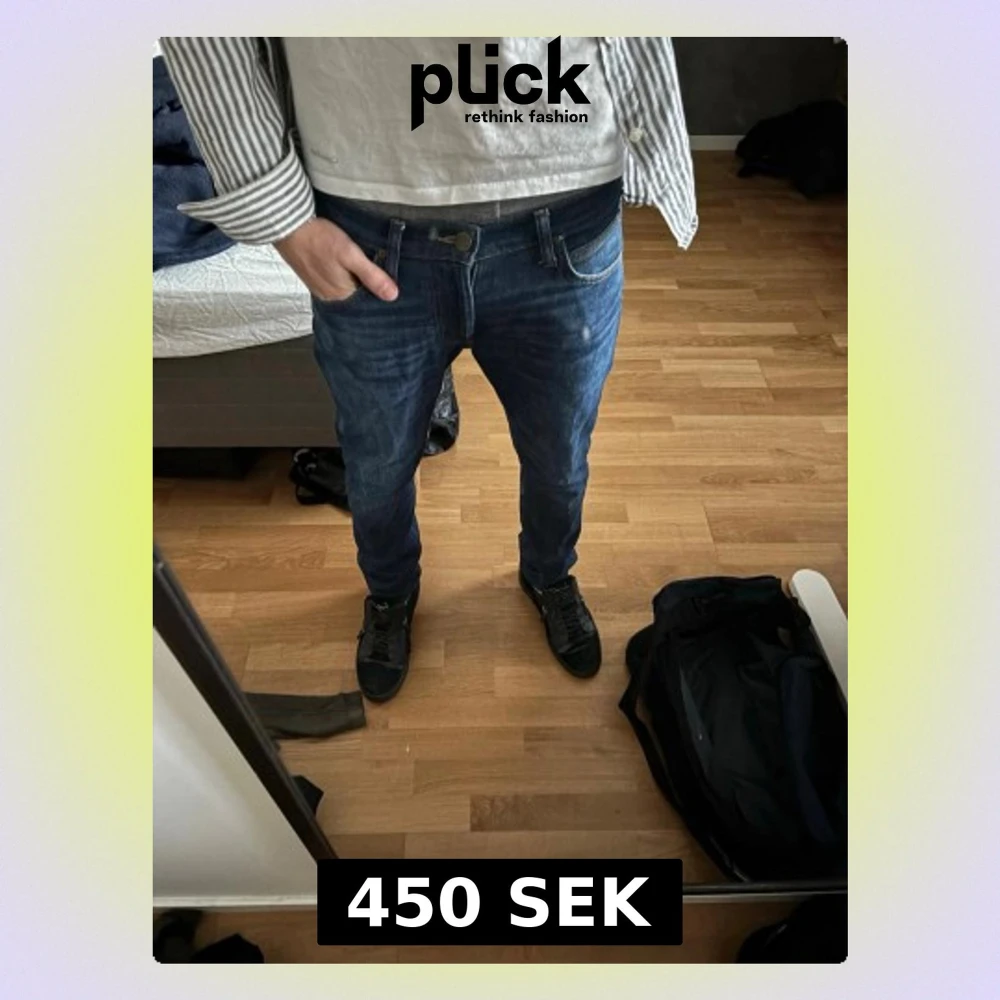 Snygga mörkblå jeans från Lee i slim fit-modell, säljs för att de lite för små. Köptes i affär. Använda 2-3 gånger så de är i ny skick. W30 L32