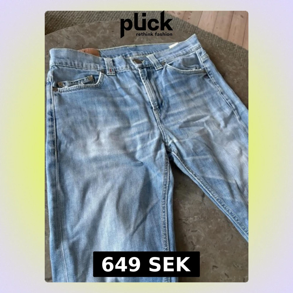 Säljer ett par ljusblå dondup jeans med klassisk femficksmodell och snygga slitningar på bakfickan. Jeansen har raka ben och är tillverkade i bomull med en skön tvättad look. Perfekta för en avslappnad och trendig stil. Det är i storlek 34 men sitter som 30