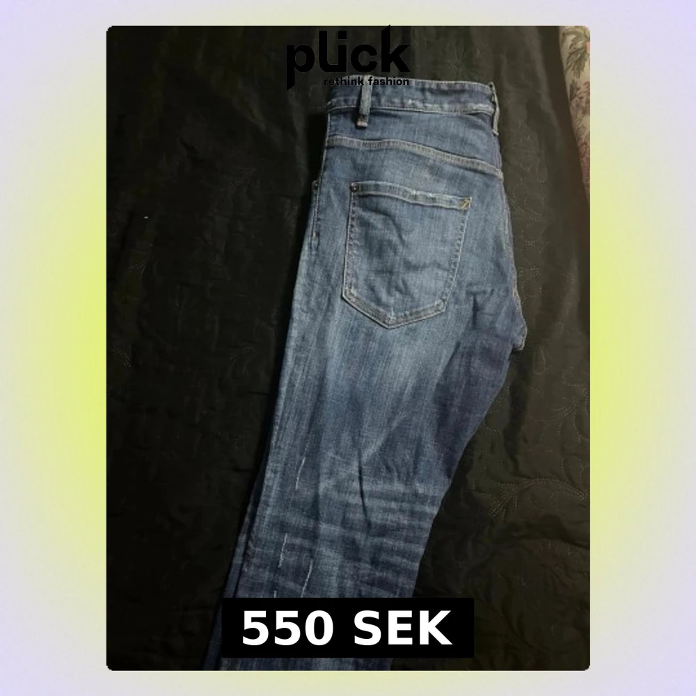 Säljer ett par blå jeans från Dsquared2 med snygg tvätt och en unik patch bak med rosor och Dsquared2-logga. Klassisk femficksmodell och raka ben. Perfekta för dig som vill ha något extra i garderoben. Jag har mer bilder men går inte att lägga mer än 7 behöver du mer skickar jag