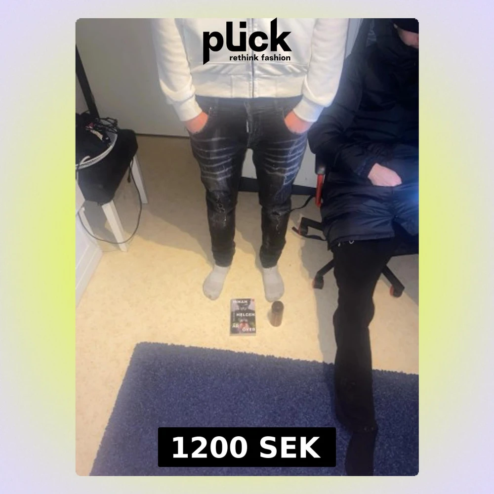 Snygga svarta slim fit jeans med slitningar och ljusa detaljer på låren. Jeansen har klassisk femficksdesign och normal midja. Perfekta för en trendig och avslappnad stil.