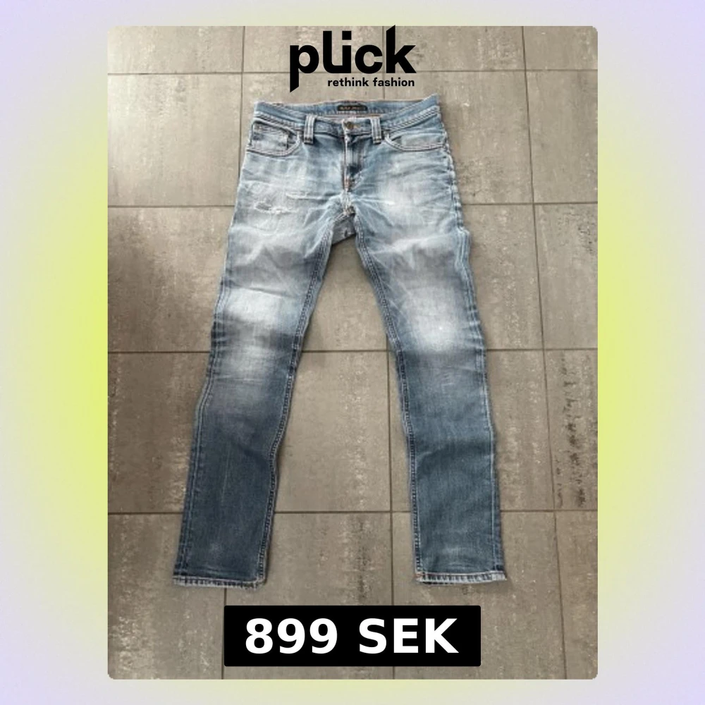 Blåa Nudie jeans storlek W28 L32. Feta fades och slitningar. Hör gärna av dig vid frågor eller funderingar.