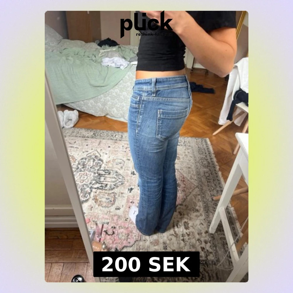 Snygga blå straight/bootcut jeans med låg midja, jättefint skick och från Massimo Dutti🥰storlek 26