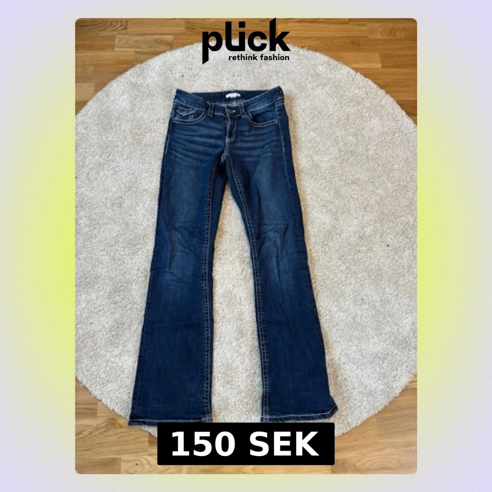Snygga mörkblå bootcut jeans med klassisk femficksdesign och kontrastsömmar. Jeansen har låg midja och utsvängda ben, perfekta för en avslappnad och trendig look. Tillverkade i denim med lätt stretch för extra komfort.