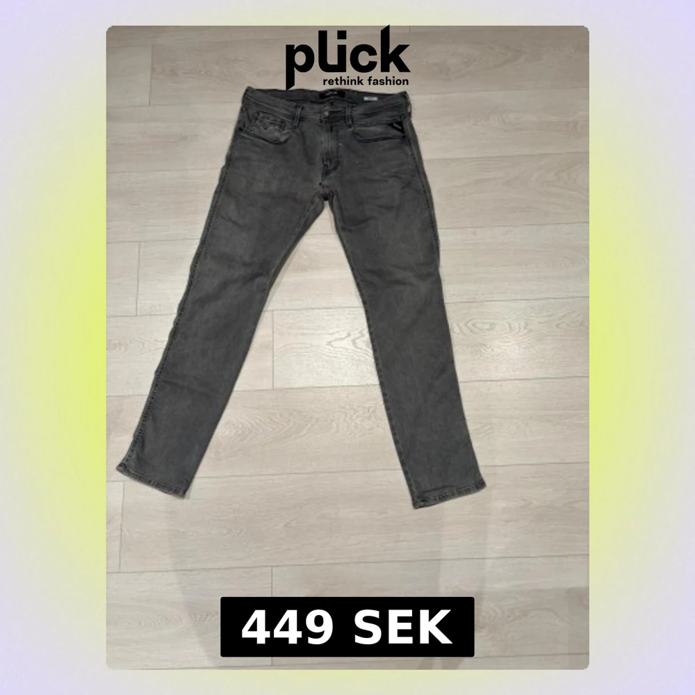 Säljer dessa feta replay jeans i grå färg. Storleken är W33 L32. Bra skick men en liten defekt i skrevet(se bild 4). Bara skriva vid frågor🤗