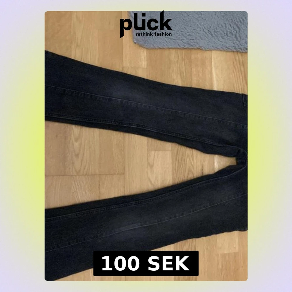 Säljer ett par svarta jeans med rak passform och klassisk femficksdesign. Jeansen har en enkel look utan synliga slitningar eller dekorationer, perfekta till en avslappnad stil. Materialet är troligtvis bomullsdenim med lite stretch.