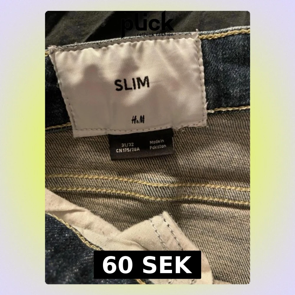 Säljer ett par blå slim fit jeans från H&M i storlek 31/32. Jeansen har klassisk femficksmodell, normal midja och smal passform hela vägen ner. Materialet är denim med snygg tvättad look och kontrastsömmar. Perfekta för en stilren och modern outfit.