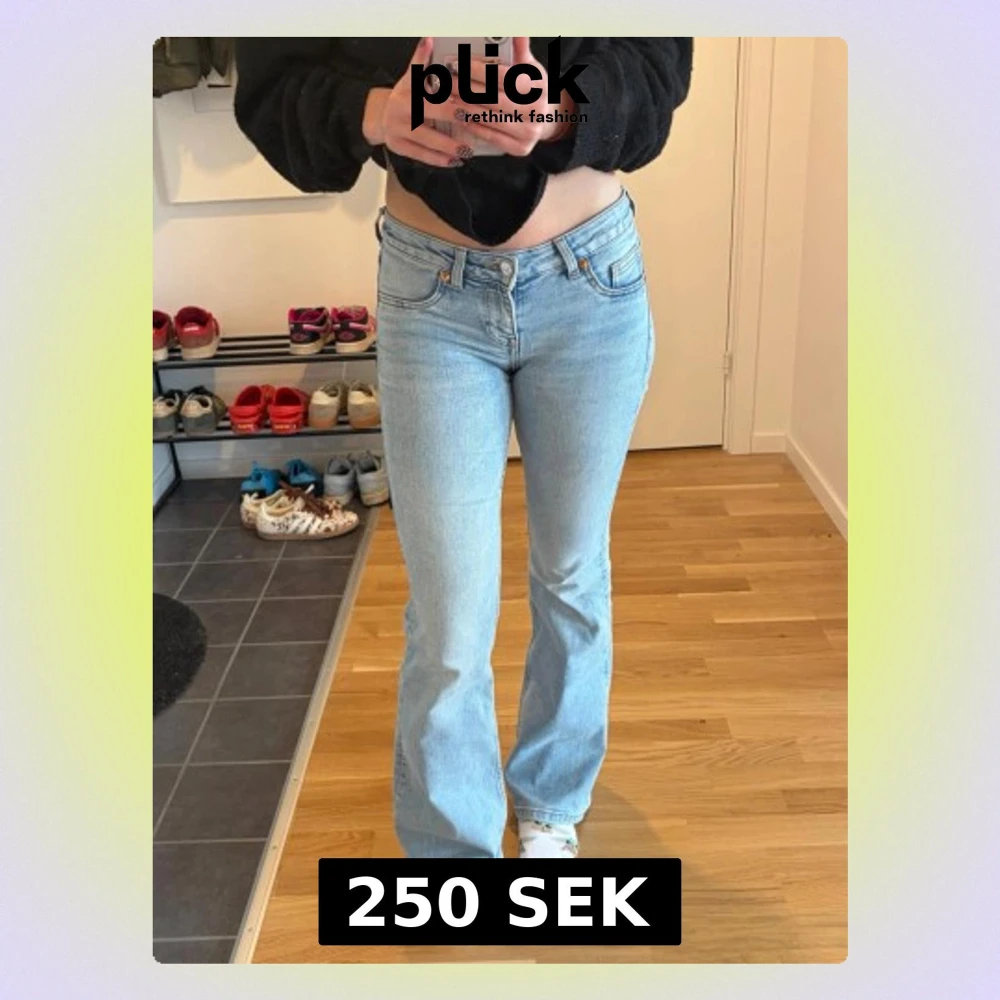 Säljer ett par ljusblå bootcut jeans från H&M med låg midja. Jeansen har en snygg tvätt och är tillverkade i mjuk denim med lite stretch för skön passform. Hör av dig vid frågor eller intresse🥰