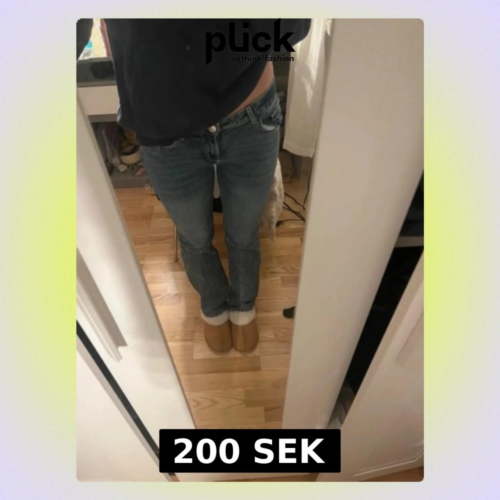 Säljer ett par klassiska blå jeans med rak passform och låg midja. Jeansen är tillverkade i ett slitstarkt denimtyg. Perfekta för en avslappnad och trendig look. Aldrig använda