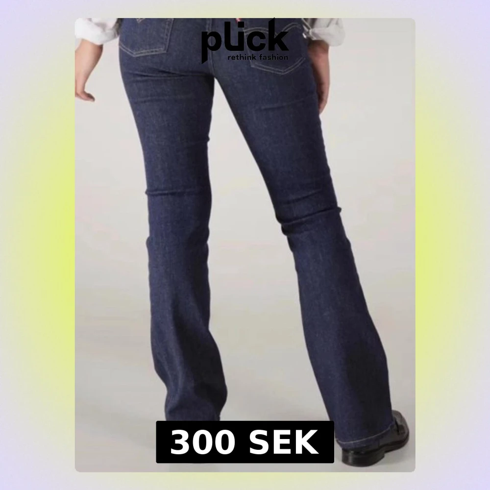Snygga mörkblå bootcut jeans från Levi's med klassiska bakfickor och hög midja. Jeansen har en figurnära passform upptill och utsvängda ben.