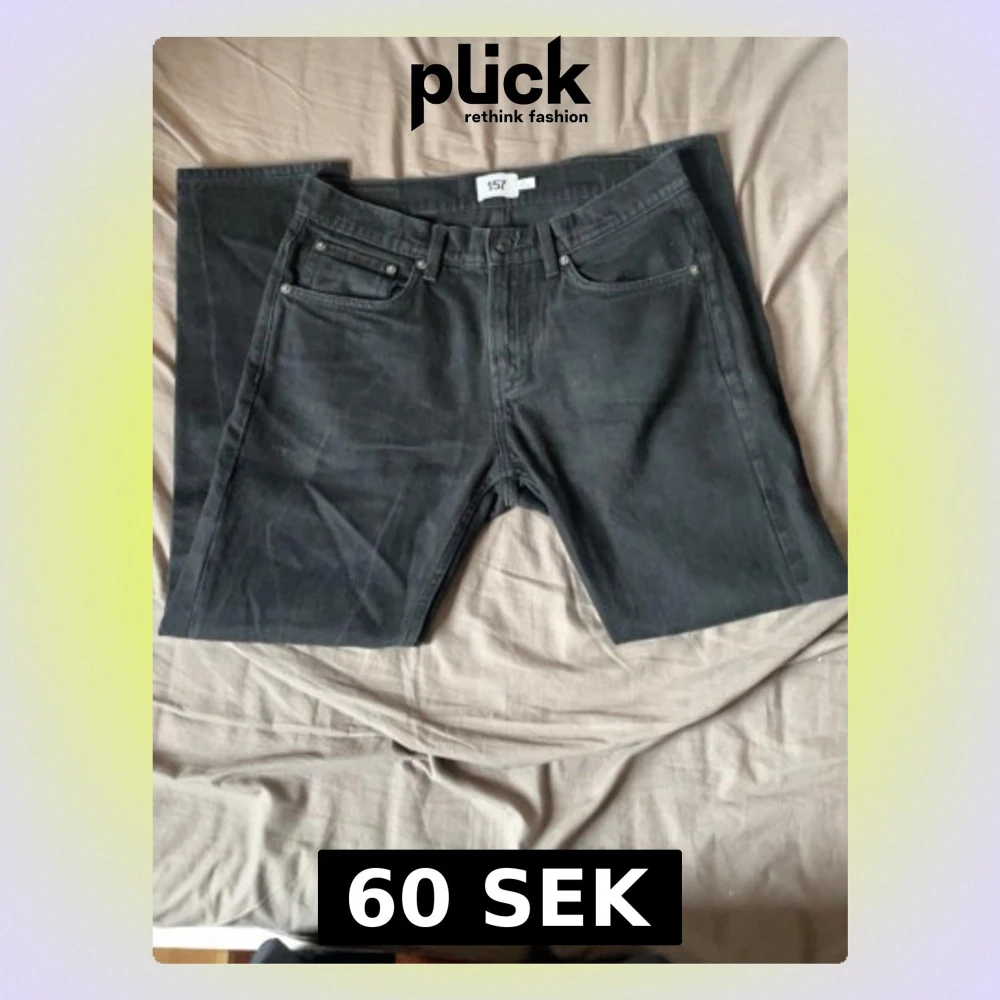 Säljer ett par svarta jeans från 157 med rak passform och klassisk femficksdesign. Jeansen har normal midja och är tillverkade i ett mjukt denimtyg. Perfekta för en clean och enkel stil.