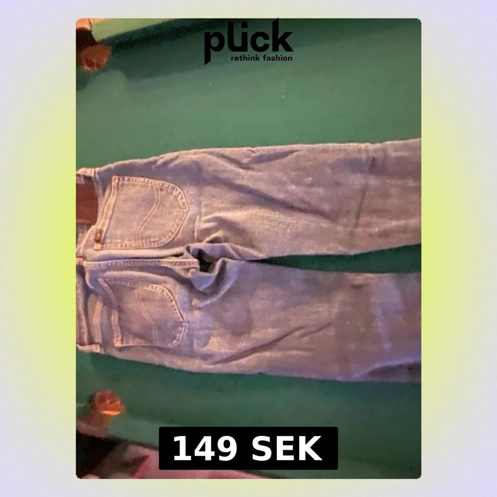 Säljer ett par klassiska blå jeans med raka ben och femficksmodell. Jeansen har en snygg läderpatch bak i midjan och kontrastsömmar. Perfekta till en avslappnad stil och tillverkade i slitstarkt denimtyg.