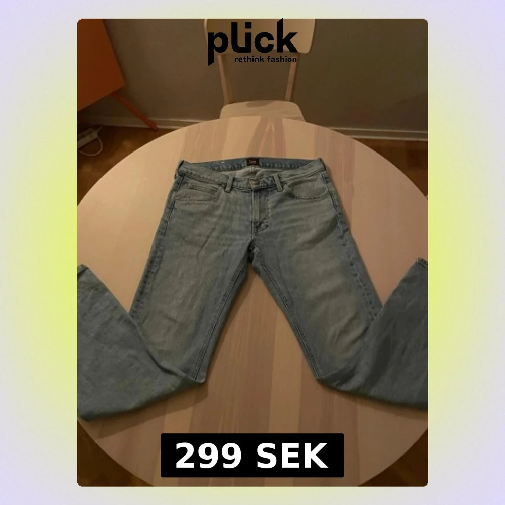 Säljer ett par ljusblå jeans från Lee med klassisk femficksmodell och raka ben. Jeansen har normal midja och Lee-logga på bakfickan. Perfekta för en avslappnad och stilren look.