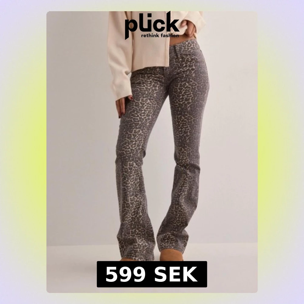 Obs de är i 36 men de är små i storlek så de sitter som 32! Snygga bootcut jeans med leopardmönster i grå och bruna toner. Jeansen har klassisk femficksdesign och normal midja. Perfekta för dig som vill sticka ut med ett djurmönster och skapa en trendig look.