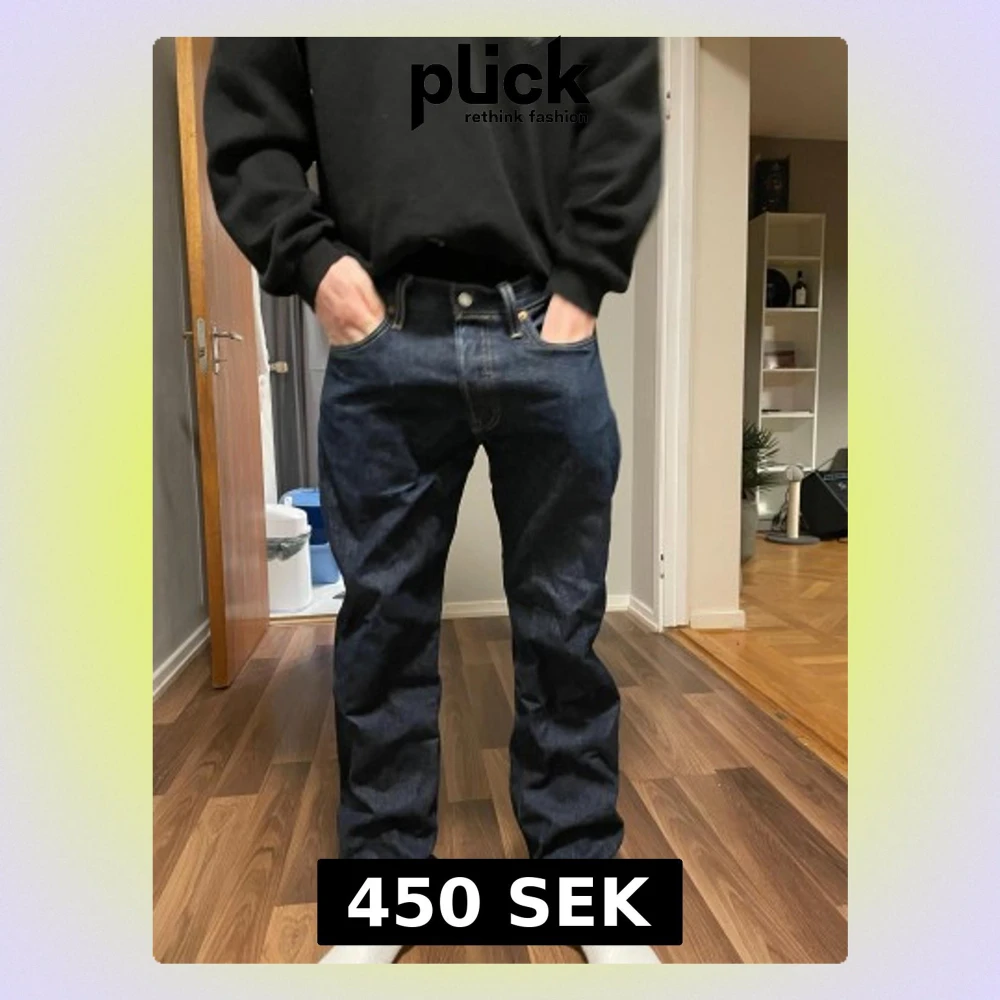 Säljer ett par Levi's 501 150th edition jeans i mörkblå tvätt. W32 L32. Använda några gånger, så jättefint skick. Killen på bilden är 185.