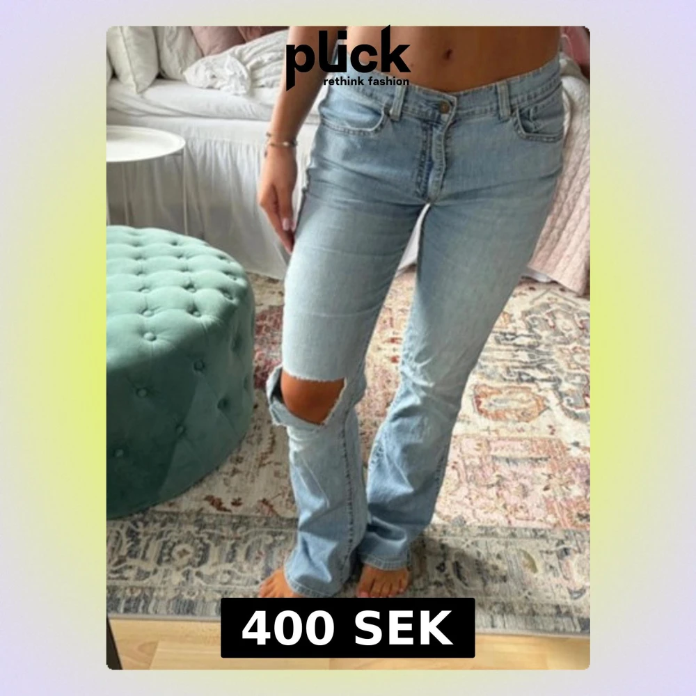 Ljusblå bootcut jeans med hål