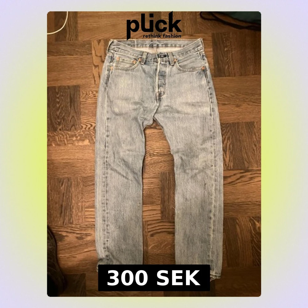 Klassiska ljusblå jeans från Levi's 501 med rak passform och fem fickor. Jeansen har hög midja, gylf med knappstängning och råa, avklippta benslut för en avslappnad vibe. Tillverkade i slitstark denim, perfekta för en casual look. W29 L30