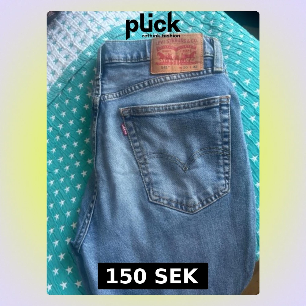 Säljer ett par klassiska blå Levi's 541 jeans med raka ben och normalhög midja. Jeansen har fem fickor, Levi's ikoniska läderpatch bak och röd logotagg på bakfickan. Perfekta för en avslappnad och tidlös stil.