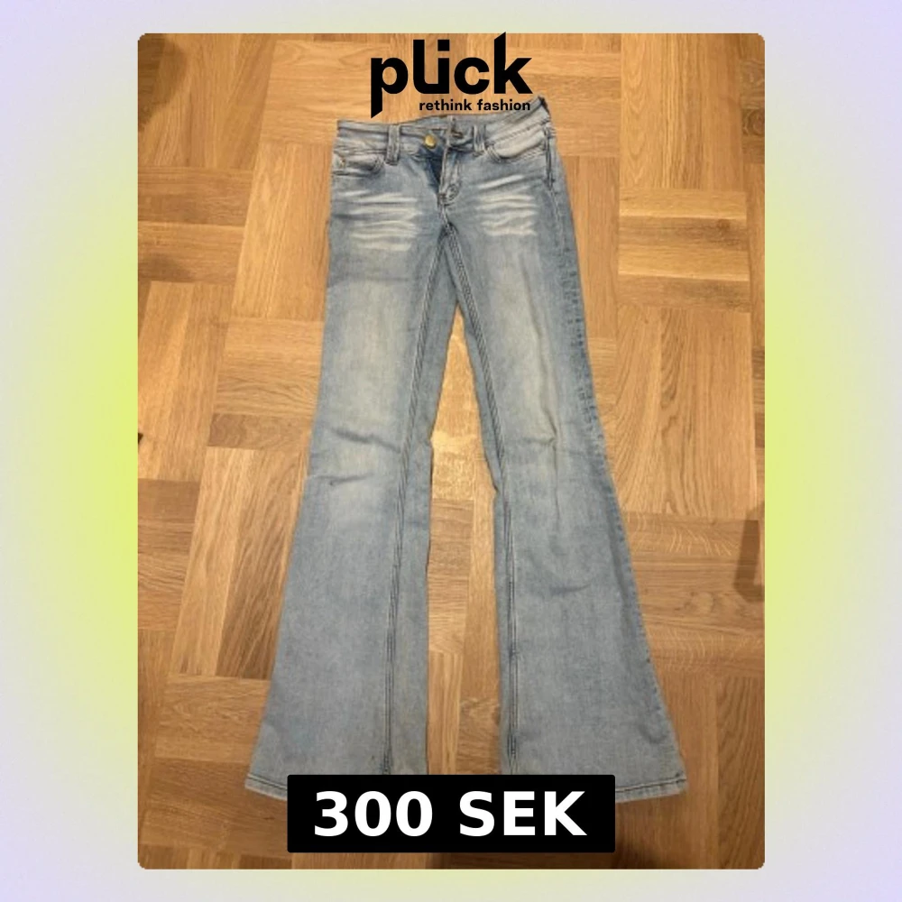 Säl sopiga ljusblå bootcut jeans från Cheap Monday med klassisk femficksdesign och tydliga slitningar framtill. Jeansen har en grön etikett bak i midjan och är tillverkade i mjuk denim. Perfekta för dig som gillar retrovibbar och relaxed stil. Knappt använda