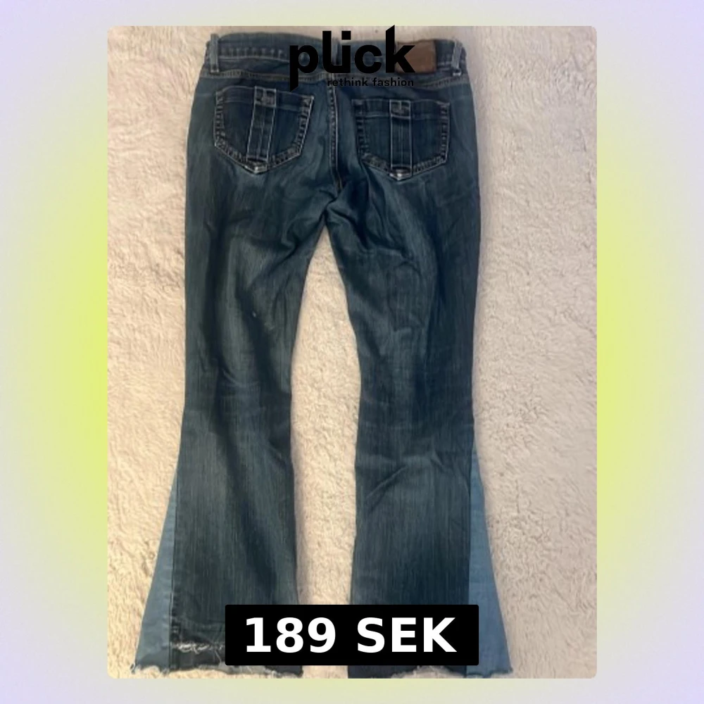 Second hand jeans som är omsydda till flare/bootcut. Ser korta ut på bilden men är ca.72 cm. Jeansen är i bra men tydligt använt skick. Lite trasiga nedtill då det en gång varit uppsydda, men ger fin detalj (se sista bild).🧡🧡🧡