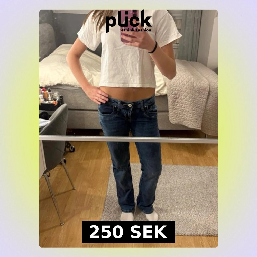 Säljer ett par blå bootcut jeans från LTB med klassisk femficksmodell och låg midja . Perfekta för en avslappnad och trendig lock Storlek är W 26 och L 30