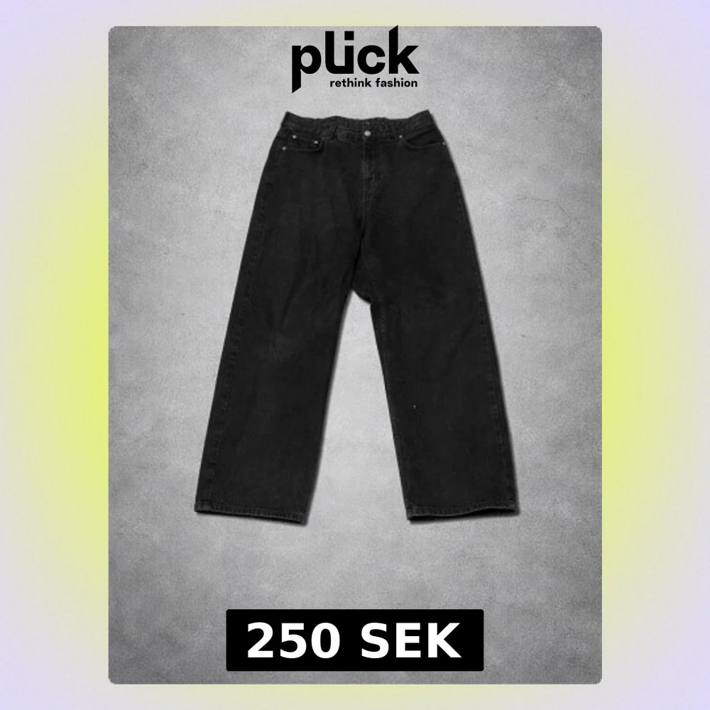 Säljer ett par svarta wide leg jeans från Sweet Skts. Jeansen har hög midja, fem fickor och raka, vida ben. Materialet är kraftig denim i 100% bomull. Perfekta för en avslappnad och trendig look.